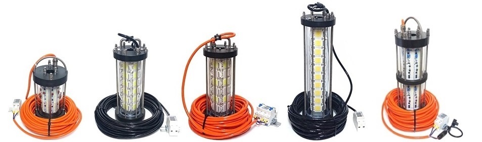特 徴 ② 各商品、出力が2倍程度のメタハラ水中集魚灯と同等の集魚効果があります。